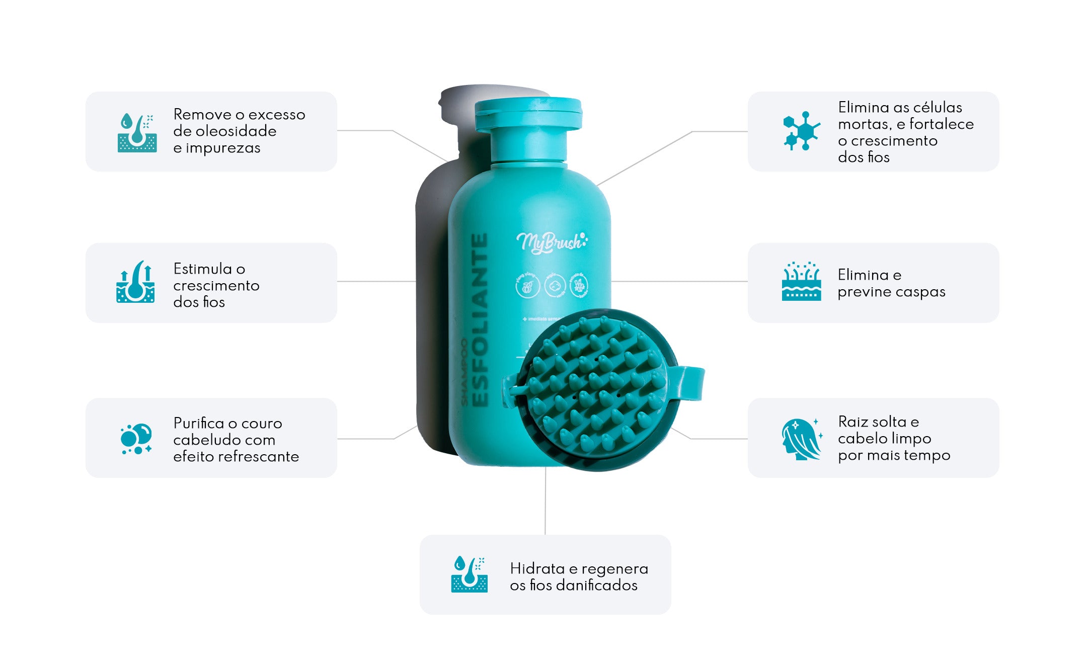 Este kit contém: 1 Escova My Brush cor verde+ 1 Shampoo Esfoliante My Brush