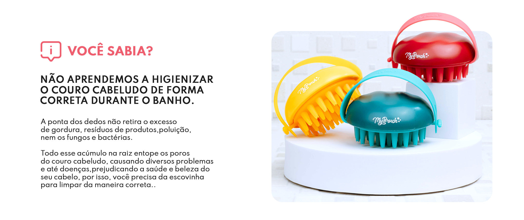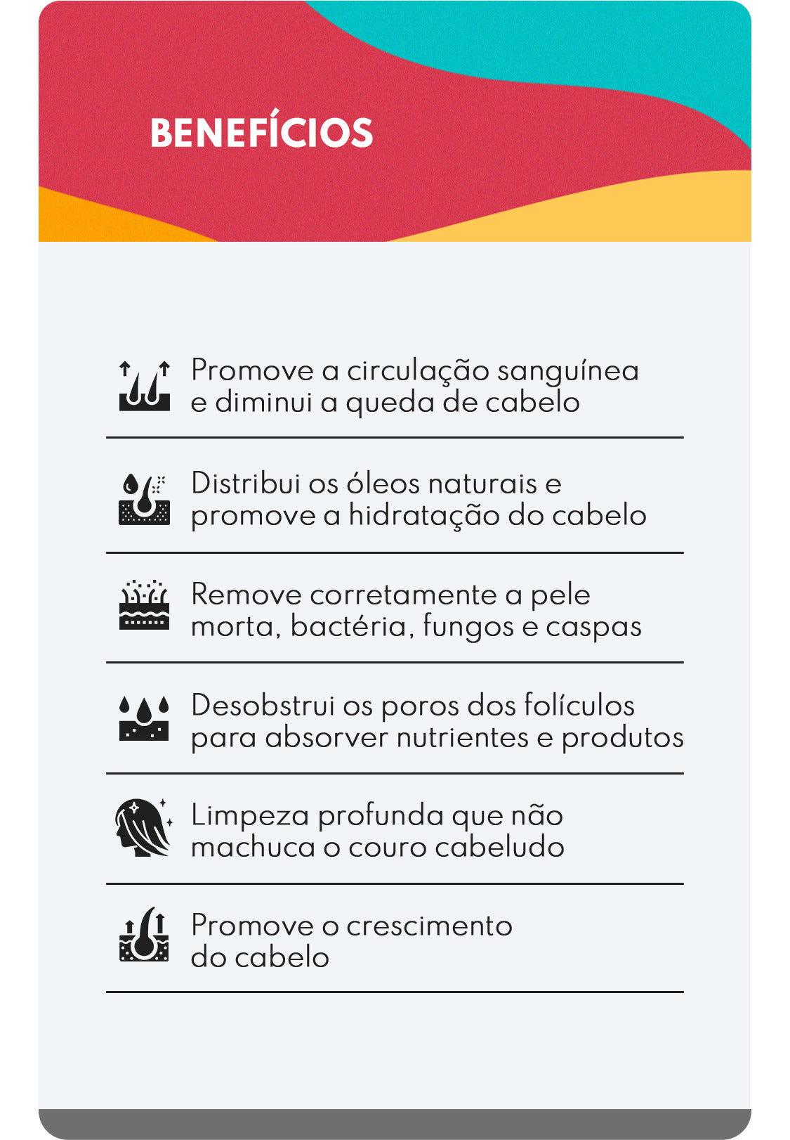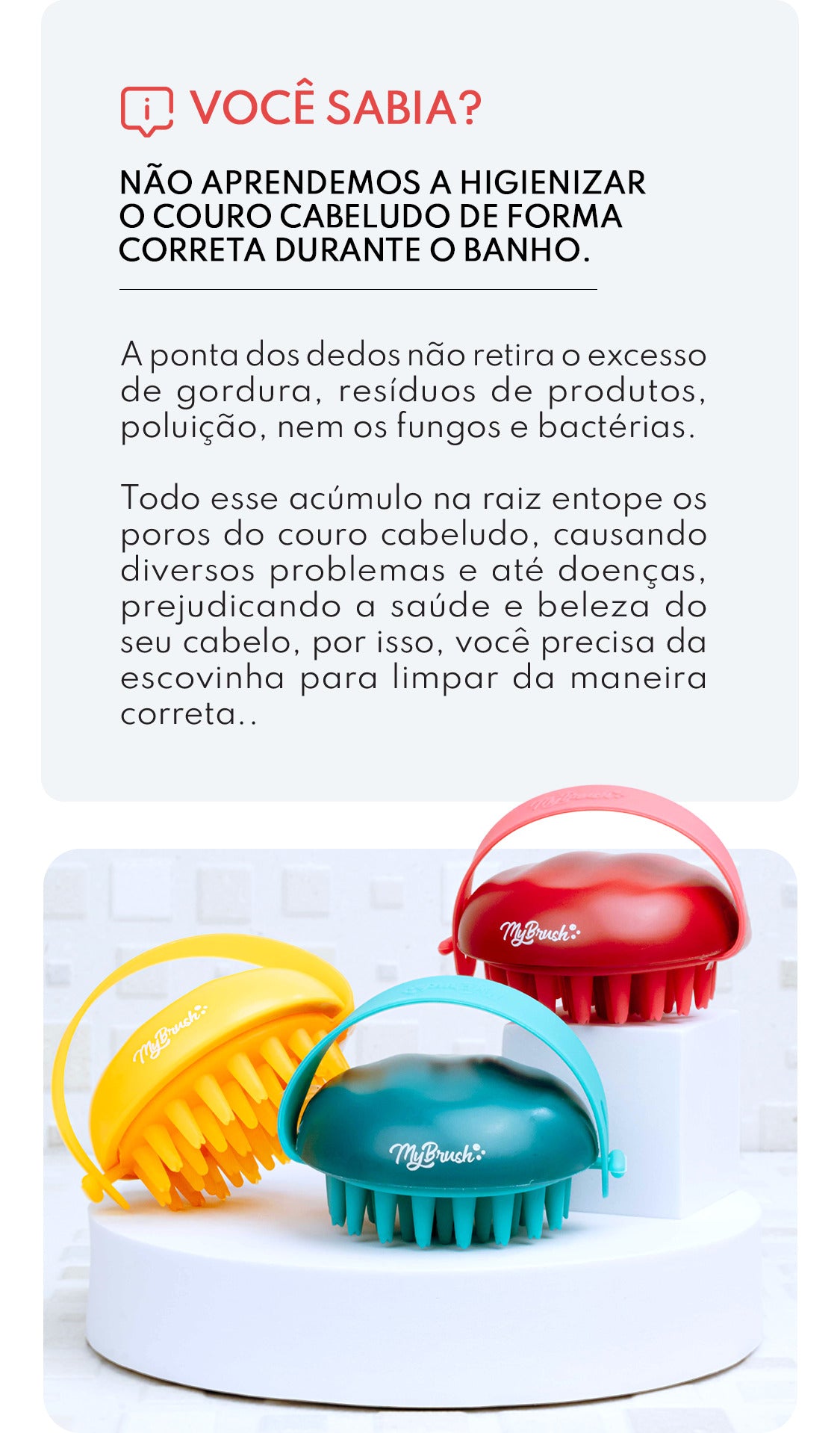 Após espalhar seu shampoo no couro cabeludo, enquanto o shampoo age, utilize sua My Brush fazendo pequenos movimentos circulares, assim você estará massageando e limpando seu couro cabeludo efetivamente. Não precisa aplicar força, faça movimentos suaves.